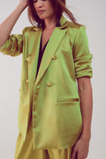 Satin Double Breasted Blazer - Lime